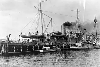 Ardent was built as a commercial fishing steamer by the Greenport Basin and Construction Company at Greenport on Long Island, New York, in 1902.[1] On 11 June 1917, the U.S. Navy purchased her from Raymond J. Anderson of Newport, Rhode Island,[1] for use as a section patrol boat and minesweeper during World War I.[2] She was commissioned on 15 August 1917 as USS Ardentand was given the hull number SP-680.[1]