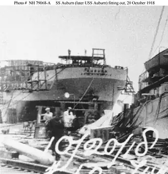 ![]() Fitting out Auburn in Chester, Pennsylvania, 20 October 1918.