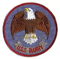 USS Barry (DD-933) was one of eighteen Forrest Sherman-class destroyers of the United States Navy, and was the third US destroyer to be named for Commodore John Barry. Commissioned in 1954, she spent most of her career in the Caribbean, Atlantic, and Mediterranean, but also served in the Vietnam War, for which she earned two battle stars. Another notable aspect of her service was the Cuban Missile Crisis in 1962. Decommissioned in 1982, she became the "Display Ship Barry" (DS Barry), a museum ship at the Washington Navy Yard in Washington, D.C., in 1984.
