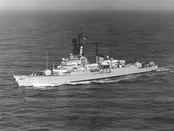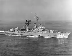 On 24 September, after several weeks of post-deployment repairs and upkeep, she steamed into Narragansett Bay to assist the Norwegian freighter Belleville which lay aground off Seal Rock. On 26 September, she helped escort the nuclear submarine Seawolf, carrying President Dwight D. Eisenhower, as she conducted a diving demonstration off Newport. After several months of routine operations, including antisubmarine warfare (ASW) exercises and plane guard operations with the carriers Forrestal and Leyte, the destroyer spent May 1958, preparing for her next deployment to the Mediterranean.[6]