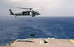 USMC M327 mortar air lifted onto Bataan's deck by MH-60S Seahawk on 7 June 2006