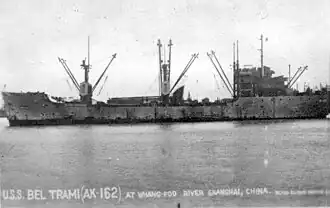 ![]() USS Beltrami (AK-162) at anchor, on the Whangpoo River, off Shanghai, China, c. 18 November to 26 January 1946