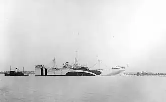 ![]() SS Berwyn photographed off the Bethlehem Shipbuilding Corporation's Bethlehem Sparrows Point Shipyard at Sparrows Point, Maryland, on 26 September 1918 at the time of her completion, two days before her acquisition by the United States Navy. She is painted in dazzle camouflage.