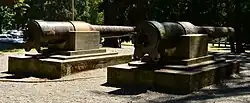 Both of Boston's 8-inch (203-mm) guns were placed at the new Seattle Naval Hospital in 1942. After the hospital closed, the guns went with the site to the new Firlands Sanitarium owned by King County in 1947. At some point after 1952, the guns were moved to Hamlin Park, in Shoreline, Washington.[11][12] However, county records do not indicate when the guns were placed in the park or why it was done.[13] Of the two guns displayed at Hamlin Park, the easternmost gun bears a plaque which states that the gun fired the first shot of the Battle of Manila Bay. The other bears a plaque crediting the gun with the dismounting of three guns at the Spanish fort of Cavite.