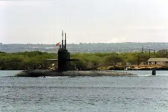 After five and a half years in Guam, Buffalo returned to Pearl Harbor in early 2013, rejoining Submarine Squadron 1.[13] After completing a 17-month Pre-Inactivation Restricted Availability,[14] on 23 December 2016 Buffalo completed her final Western Pacific deployment prior to scheduled decommissioning,[15] for which she earned a Navy Unit Commendation. On 1 May 2017, Buffalo departed Pearl Harbor for the final time.[6]