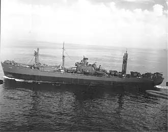 Assigned to the Pacific Fleet, Caelum carried cargo between Pearl Harbor and Tarawa, Majuro, Eniwetok, Kwajalein, and Ulithi, in her first year of service. Her tireless operations included participation in the occupation of Kwajalein and Majuro in February 1944, and from June through October 1944, she was assigned to Service Squadron 10.[3]
