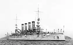 ![]() USS San Diego (ACR-6), 28 January 1915, while serving as flagship of the Pacific Fleet. Note two-star rear admiral's flag flying from her mainmast top.