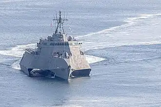 USS Canberra (LCS-30) is an Independence-class littoral combat ship of the United States Navy.[1][6] She is the second US ship to be named Canberra, after the Australian cruiser HMAS Canberra, named after the Australian capital[6] and sunk during the Battle of Savo Island.