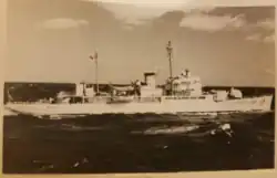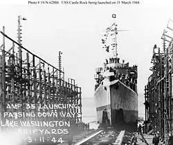 ![]() USS Castle Rock (AVP-35) off Houghton, Washington, on 6 October 1944, two days before commissioning.