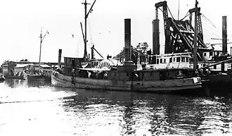 ![]() Davis K. Philips (American Menhaden Fishing Vessel, 1877) In port, possibly while she was in U.S. Navy service. Several men in what appear to be enlisted working uniforms are on her decks and those of a nearby vessel.