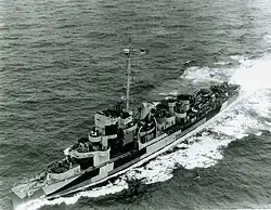 | Armament | 3 × 3 in (76 mm) cal Mk 22 (1×3), 4 × 1.1"/75 caliber gun(1×4), 9 × Oerlikon 20 mm Mk 4 AA cannons, 1 × Hedgehog Projector Mk 10 (144 rounds), 8 × Mk 6 depth charge projectors, 2 × Mk 9 depth charge tracks |