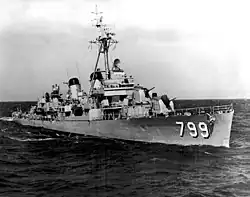 USS Jarvis (DD-799) was a Fletcher-class destroyer of the United States Navy, the third Navy ship named for Midshipman James C. Jarvis (1787–1800), who was killed at the age of 13 during the historic engagement between the famed frigate Constellation and the French frigate La Vengeance.