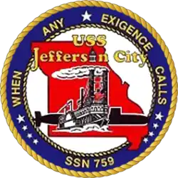 USS Jefferson City (SSN-759), a Los Angeles-class submarine, is the only ship of the United States Navy to be named for Jefferson City, Missouri. The contract to build her was awarded to Newport News Shipbuilding and Dry Dock Company in Newport News, Virginia on 26 November 1984 and her keel was laid down on 21 September 1987. She was launched on 17 August 1990 sponsored by Mrs. Susan A. Skelton, and commissioned on 29 February 1992, with Commander Russell Harris in command.