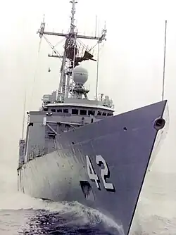 - ^ a b c d e f g h i j k l m n o p q r s t u v w x y Frey, Courtney & Evans, Mark L. (28 July 2015). "Klakring (FFG 42), 1982-2013". Naval History and Heritage Command. Retrieved 5 January 2016.