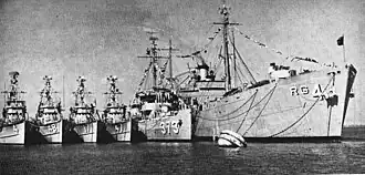 ![]() Right to left: Tutuila (ARG 4), Peregrine (AM 373), Fulmar (AMS 47), Hawk (AMS 17), Lapwing, and Cardinal (AMS 4)