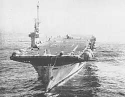 She was assigned to a support carrier group on 8 April, and began conducting operations with the main strike group of Task Group 52.1. She consequently began combat operations over Okinawa in support of the ongoing battle. For the next four weeks, she provided close air support and bombed Japanese defenses as the marines struggled to fight their way south. During these operations, her fighters shot down four Japanese aircraft. She ceased operations over Okinawa on 7 May, when she transferred her aircraft contingent to Shipley Bay at Kerama Retto, which was to serve as her replacement.[8][10]