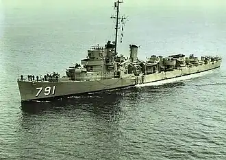 Maloy (DE-791) was laid down by Consolidated Steel Corporation in Orange, Texas, on 10 May 1943; launched on 18 August 1943, sponsored by Mrs. Thomas J. Maloy, widow of Chief Water Tender Maloy; and commissioned on 13 December 1943.