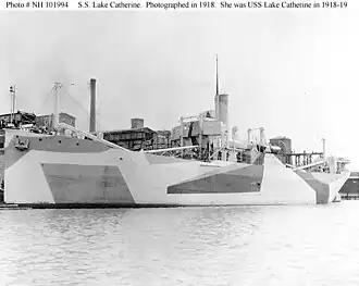 The ship was built in 1918 as Lake Catherine by the Toledo Shipbuilding Company of Toledo, Ohio and taken over by the United States Shipping Board at New York City on 4 October 1918, and commissioned the same day for duty with the Naval Overseas Transportation Service (NOTS) as USS Lake Catherine (ID-3568).