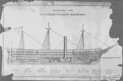 ![]() USS Merrimack; Engraving by L.H. Bradford & Co., after a drawing by G.G. Pook