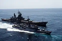 On 9 June 1983, Meyerkord deployed on her sixth WESTPAC with USS New Jersey and other Destroyer Squadron 17 ships. World events forced New Jersey to other commitments and sent Meyerkord to the Indian Ocean to escort the Carl Vinson battle group. Upon completion of the Indian Ocean tour, Meyerkord was tasked with the humanitarian and salvage operations at the Korean Air Lines Flight 007 crash site after it was shot down by the Soviet Union. Meyerkord visited Manila, Singapore, Hong Kong and Sasebo during the deployment. Meyerkord returned to San Diego on 12 December 1983 and began preparation for an overhaul scheduled to start in March 1984 at Long Beach.[4]