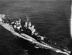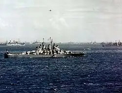 ![]() USS Miami at anchor in 1945