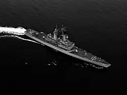 USS Mississippi (CGN-40), a Virginia-class nuclear-powered guided-missile cruiser, was the fourth ship of the United States Navy named in honor of the 20th state admitted to the Union. Her keel was laid down by the Newport News Shipbuilding and Drydock Company at Newport News, Virginia, on 22 February 1975. She was launched on 31 July 1976. The ship was commissioned on 5 August 1978 by Jimmy Carter, then serving as the 39th president of the United States. Early deployment included escorting the carrier USS Nimitz. She also was deployed in 1989 as a response to the capture and subsequent murder of U.S. Marine Corps Colonel William R. Higgins by terrorists.[1]