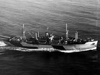 She decommissioned at Port Chicago, California, 13 September 1946 and entered the Pacific Reserve Fleet, Mare Island at Mare Island. Her name was struck from the Navy list 1 October 1958. She transferred to the Maritime Administration the same day and was assigned to the National Defense Reserve Fleet.[3] She was berthed in Suisun Bay, California on 29 October 1958. On 5 March 1977, she was sold to American Ship Dismantlers, Inc., for $218,001, to be scrapped. At 11:15 PDT, on 8 March 1975 she was withdrawn from the Reserve Fleet and sent to the breaker's yard.[4]