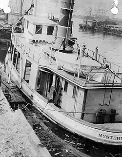Mystery was built in 1886 by A. C. Brown at Tottenville, New York, as a commercial fishing trawler. The 3rd Naval District inspected her on May 7, 1918 for possible World War I U.S. Navy service. The Navy chartered her from Empire Water Co., Inc., of New York City on 18 July 1918, took her over 20 August 1918, assigned her Identification Number (ID. No. 2744) and commissioned her as USS Mystery (ID-2744) on 2 September 1918. Confusingly, the designation "SP-2744" was painted on her bow and this designation is reported as her official one by many sources,[1] although this contradicted her official data card, which identifies her as "Id. No. 2744," a more likely official designation for her given that "SP" numbers were usually much lower and because she did not have the patrol vessel role of most "SP" boats.[2]
