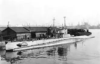 ![]() USS O-10 at the Boston Navy Yard in Boston, Massachusetts, on 28 September 1922. USS O-4 is moored inboard of O-10.