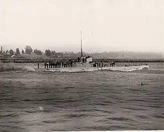USS O-16 off the Mare Island Navy Yard, Vallejo, California, on 3 September 1918.
