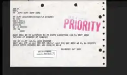 Salt Lake City was used in evaluating the effects on surface vessels during an initial test with an aerial atomic bomb burst on 1 July and during the second test of a subsurface burst on 25 July. Surviving two atomic bomb blasts, she was decommissioned on 29 August and laid up to await ultimate disposal. She was sunk as a target hull on 25 May 1948, 130 mi (110 nmi; 210 km) off the coast of Southern California and stricken from the Naval Vessel Register on 18 June 1948.[7] Records preserved by the National Archives and Records Administration place the location of the wreckage at approximately 31°57'12.0"N 119°54'24.0"W, at 1800 fathoms deep.[12]