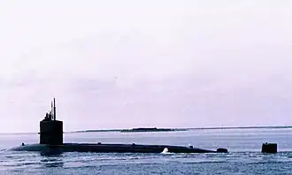 ![]() USS Sand Lance (SSN-660) in Charleston Harbor off Charleston, South Carolina, with Fort Sumter in the background.