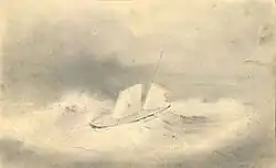 ![]() The Sea Gull in heavy seas, drawn by Alfred Thomas Agate