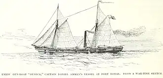 On 5 November 1861, Seneca and three other Federal Union gunboats engaged and dispersed a Confederate squadron near Port Royal, South Carolina; two days later, she took part in the capture of Port Royal, which proved to be an invaluable Union naval base throughout the remainder of the Civil War. From the 9th–12th, she took part in the expedition which took possession of Beaufort, South Carolina. On 5 December, she participated in the operations about Tybee Sound to help seal off Savannah, Georgia. The next day, she was in sight during the capture of schooner Cheshire, entitling her crew to share in prize money.