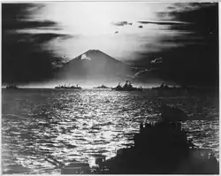 TF 58 sortied on 6 June 1944 to begin Operation Forager, the invasion of the Mariana Islands. South Dakota operated as part of TG 58.7, again under Lee's command. The unit now included six other battleships, four heavy cruisers, and thirteen destroyers. They were again tasked primarily with escorting the fast carrier strike force, providing protection against surface forces and their ample anti-aircraft batteries to defend against hostile aircraft. The carriers began their raids on 11 June and continued for several days. Japanese aircraft launched the first of several counter-attacks later that night and South Dakota used her air search radar to help vector fighters from the CAP to intercept them. As the Japanese made their approach, South Dakota's 5-inch guns opened fire. On 13 June, South Dakota and the other battleships were sent to shell Saipan and Tinian in advance of the arrival of the old battleships of the bombardment group the following day. Japanese artillery attempted to engage them but South Dakota and the other battleships easily outranged them. South Dakota bombarded the area around Tanapag Harbor for some six hours, hitting two transports in the port and starting several fires in the town. The shelling was generally ineffective, however, as the battleships were not sufficiently experienced with shore bombardment, and Japanese defenses were largely undamaged.[27]