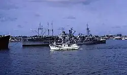 Sproston alongside USS Delta (AR-9), in 1967.