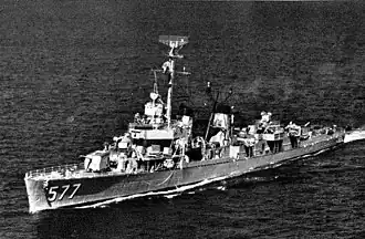 USS Sproston (DD-577) was a Fletcher-class destroyer of the United States Navy. She was the second ship named for US Naval Lieutenant John G. Sproston, who was killed in action while leading an attack on a Confederate ironclad during the American Civil War.