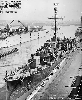 Stafford got underway from Yokosuka on 4 November, stopped in Pearl Harbor on the night of 13 and 14 November, and then continued on to San Francisco. On 22 November, she joined Corregidor at Alameda, California, and operated with the escort carrier as plane guard until 9 December. On 12 December, she reported to the Commander, 19th Fleet, at San Pedro Bay, for duty pending inactivation. Stafford began inactivation overhaul at Standard Shipbuilding Corporation, San Pedro, Los Angeles, on 3 January 1946.