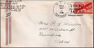 Naval cover from USS Tennessee, postmarked while on its final mission during the occupation of Japan   (other examples)