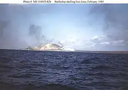 Tennessee off Iwo Jima bombarding Mount Suribachi