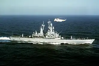 ![]() USS Texas underway on 23 June 1985