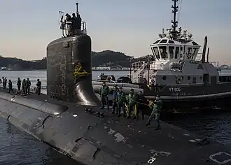 The submarine departed Pearl Harbor for her first three-month operational patrol on 27 October 2010. The location of her first deployment was not disclosed by the Navy.[14] In May 2012, Texas underwent a scheduled 20-month-long overhaul at Pearl Harbor Naval Shipyard in Hawaii.[15][16][17]