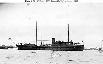 ![]() USS Tuna (SP-664) in a harbor in the northeastern United States in 1917.
