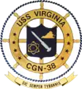 USS Virginia (CGN-38) was a nuclear-powered guided missile cruiser, the lead ship of her class, and the eighth ship of the United States Navy to be named for the Commonwealth of Virginia. She was commissioned in 1976 and decommissioned in 1994.
