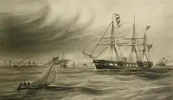 After refit, Wabash departed Fort Monroe on 29 October 1861 to spearhead the Federal assault on Port Royal, South Carolina. The assembled invasion fleet was the largest yet organized by the Navy, containing 77 vessels and 16,000 Army troops under Brigadier General Thomas W. Sherman. The fleet ran into a hurricane on 1 November with devastating results.[7]
