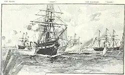 Confederate vessels twice harassed Wabash while on duty in Port Royal Sound. On August 5, 1863, CSS Juno, a small steamer on picket duty below Fort Sumter, fired upon and ran down a launch from Wabash, capturing 10 sailors and drowning two. The CSS David submarine torpedo boat also attacked Wabash on April 18, 1864. Ensign Charles H. Craven, officer of the deck, spotted the cigar-shaped vessel in time for Wabash to get underway. The David disengaged from the attack in the face of musket fire and round shot discharged from Wabash.