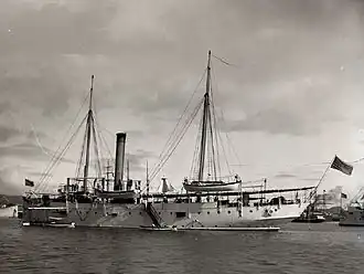 ![]() USS Wheeling (PG-14) at the Mare Island Navy Yard, California, c. August 1897.
