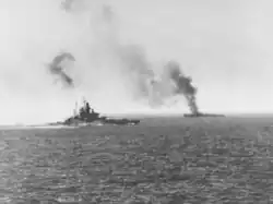 Zellars and the battleship Tennessee after both vessels had been hit by kamikazes on 12 April