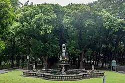 Also called the Fountain of Divine Wisdom, it consists of a barbed quatrefoil-shaped basin. The fountain features a sculpture of a lady standing on top of a lotus flower while holding a bible. The bible's cover depicts the image of the Lamb of God. The lotus flower bowl is carried by four phoenixes. It is surrounded by four deers and open shells.[7]