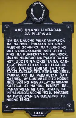 - Doctrina Christiana - a catechism in Tagalog and Spanish. The first book published in the Philippines.